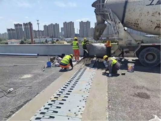 (圖為橋梁主線組織伸縮縫施工現(xiàn)場(chǎng))