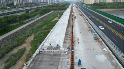 (圖為青蘭高速雙埠至河套段改擴(kuò)建項目現(xiàn)場)