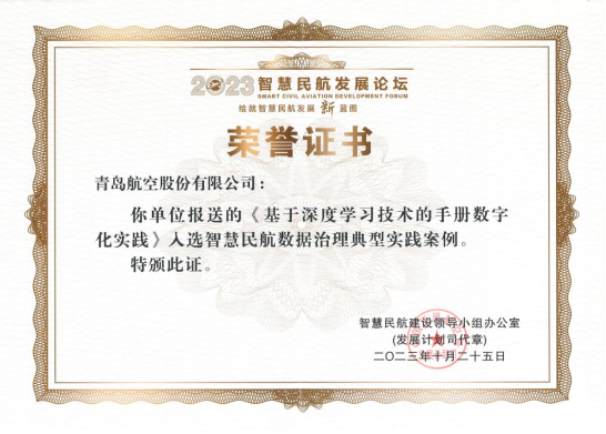 近日,2023年智慧民航發(fā)展論壇在北京舉辦,青島城投旗下青島航空獲得民航局頒發(fā)的“智慧民航典型案例”榮譽(yù)證書,成為此次評(píng)選航空運(yùn)輸單位入選的10個(gè)案例之一。這是繼2022年度民航數(shù)據(jù)共享數(shù)字化能力指數(shù)(DCI)排名第一后,青島航空的信息化建設(shè)工作再次獲得我國(guó)民航業(yè)權(quán)威獎(jiǎng)項(xiàng) 。