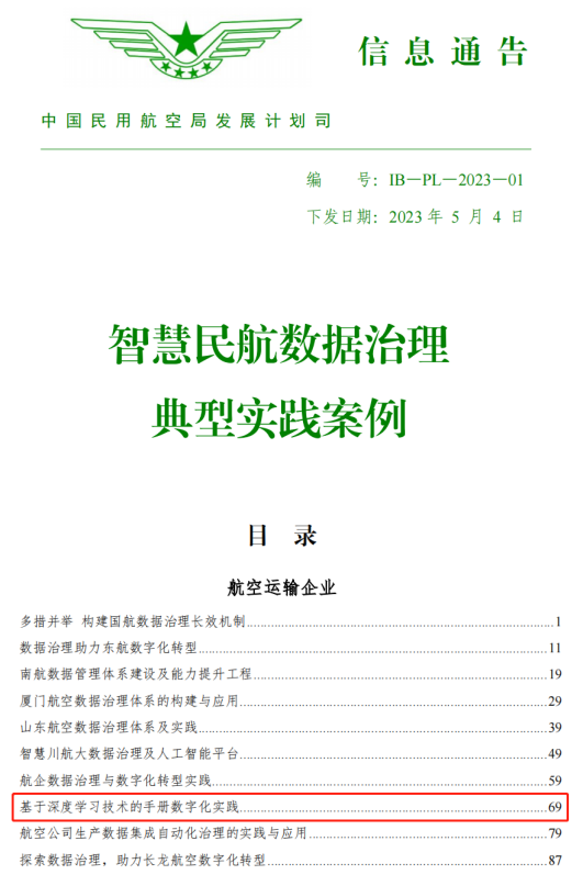 近年來(lái),青島航空充分發(fā)揮城投集團(tuán)產(chǎn)業(yè)協(xié)同優(yōu)勢(shì),與集團(tuán)旗下數(shù)字科技公司密切聯(lián)動(dòng),數(shù)字化轉(zhuǎn)型工作成果卓著。此次獲獎(jiǎng),青島航空結(jié)合行業(yè)手冊(cè)使用場(chǎng)景及數(shù)字化先進(jìn)技術(shù),與青島城投數(shù)科公司聯(lián)合制定了青島航空數(shù)字化手冊(cè)的解決方案,經(jīng)民航局發(fā)展計(jì)劃司多輪評(píng)審,最終被納入民航局智慧民航典型案例。