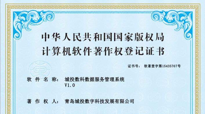 青島城投數(shù)科公司榮獲9個軟件著作權(quán)證書