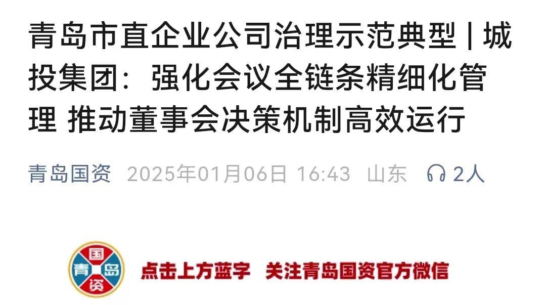 青島國資:城投集團強化會議全鏈條精細化管理 推動董事會決策機制高效運行