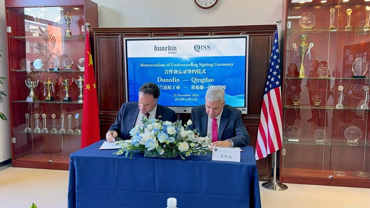 11月26日,新西蘭達尼丁市市長Jules Radich率領(lǐng)代表團訪問山東省青島第一國際學(xué)校。此次訪問旨在增進兩市在教育領(lǐng)域的交流與合作,推動雙方在多個方面的友好合作關(guān)系。青島市委外辦副主任丁安輝,青島城投集團黨委委員、副總經(jīng)理殷淙出席活動。(圖為簽約儀式的現(xiàn)場照片)在訪校過程中,殷淙代表青島城投集團對Jules Radich市長一行的到來表示了熱烈歡迎,闡釋了集團對推動兩市教育事業(yè)合作良好愿景,介紹了集團在教育領(lǐng)域的投資