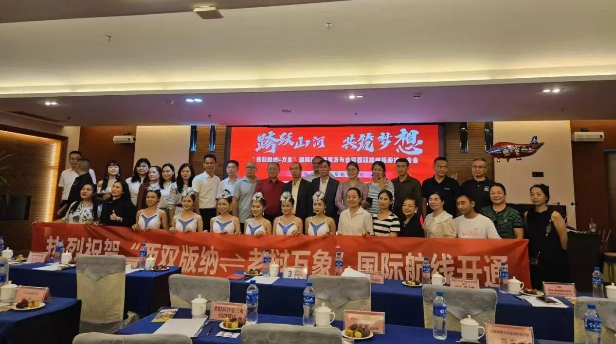 由青島城投集團(tuán)旗下青島航空?qǐng)?zhí)飛的中國(guó)西雙版納至老撾萬(wàn)象國(guó)際航線將于8月21日正式通航。該航線的開(kāi)通標(biāo)志著中老兩國(guó)在航空運(yùn)輸領(lǐng)域的合作邁出了新的步伐,為兩地人民的交流往來(lái)搭建起了一座更加便捷的空中橋梁。(圖為“西雙版納=萬(wàn)象”國(guó)際航線新聞發(fā)布會(huì))為此,青島航空聯(lián)合西雙版納州文化和旅游局、西雙版納旅游行業(yè)協(xié)會(huì)、老撾駐西雙版納景洪領(lǐng)事辦公室、老撾烏多姆賽省新聞文化和旅游廳,于8月8日在景洪市舉行“西雙版納=萬(wàn)
