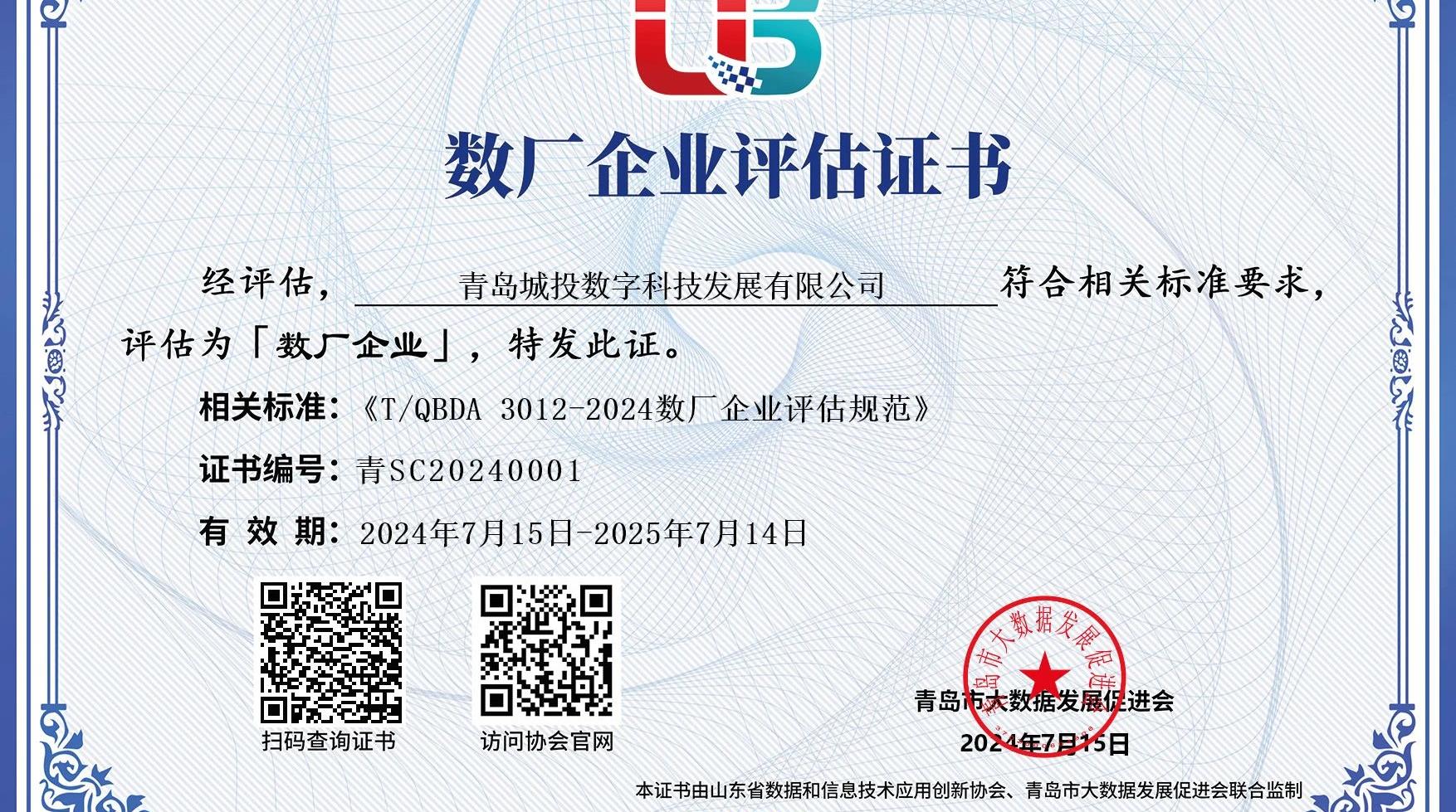 青島城投集團(tuán)旗下數(shù)科公司榮登2024年青島市首批“數(shù)廠企業(yè)”名單
