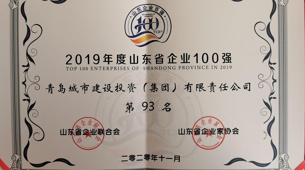 集團(tuán)入圍2019年度山東省百?gòu)?qiáng)企業(yè)榜單