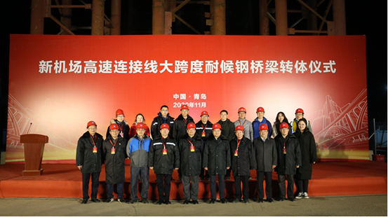 11月3日晚,新機(jī)場(chǎng)高速連接線(xiàn)(雙埠-夏莊段)工程大跨度耐候鋼橋梁轉(zhuǎn)體儀式隆重舉行,市政府副秘書(shū)長(zhǎng)王振東,市住建局副局長(zhǎng)胡樂(lè)常,城陽(yáng)區(qū)政府副區(qū)長(zhǎng)李明鋼,城投集團(tuán)黨委委員、副總經(jīng)理于志軍,黨委委員、紀(jì)委書(shū)記林本偉,黨委委員生錫順,總工程師么子寅出席儀式。